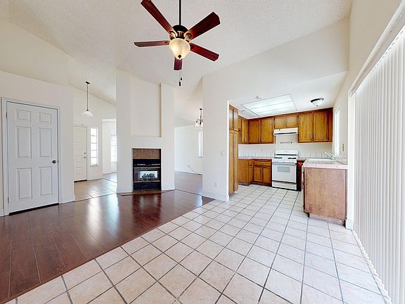 Cute and affordable Rosamond 3 bedroom 2 bath home. Home boasts large kitchen with lots of cabinetry, master bedroom with large walk in closet and slider door to back yard. Living room has high ceilings and Double sided tile gas fireplace. Home also features large grass front yard with large tree for shade. Back yard has covered patio and view of the mountains to the northwest. Home also has 2 car garage with automatic garage door opener. The many recent improvements include: tile and wood flooring, gas fireplace log, landscaping, interior paint, fans, light fixtures, blinds and garage door opener.