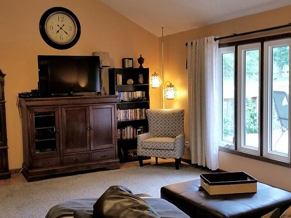 The growing family will love this large home in a quiet and established neighborhood, open floor plan, and on a huge corner lot! This well maintained home comes with 5 bedrooms, 3 and a half baths, and spiral staircase leading to a loft in the master bedroom. Stone fireplaces are a central part of this home and reach from the vaulted ceiling to the basement. New stainless appliances in kitchen including gas stove and hand made oak cabinets. Large back deck overlooks patio with fire pit and mature landscaping. Full finished basement features a penny top bar with hardwood floor making a great setting for entertaining your friends and family. New 50 year roof being installed. This one won't last long, schedule your showing today!