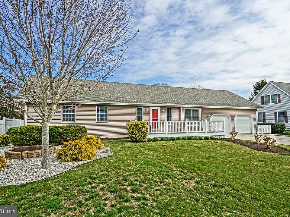 RELAXING SETTING surrounded by beautiful landscaping, this spacious 3-bedroom home invites you to try a slower pace and beach community lifestyle! Located in Fox Hollow, with no HOA fees, and only minutes to Route 1 and the beaches! Featuring convenient one-level living with an expansive floor plan that includes a large kitchen, inviting living room, light-filled sunroom, owner's suite, 2-car garage, and a generously sized back deck with retractable awning that provides the perfect setting for enjoying morning coffee & warm evenings. Other highlights include a fenced-in & tree-lined backyard with storage shed & a detached finished studio for year round enjoyment. Call and schedule a showing today!