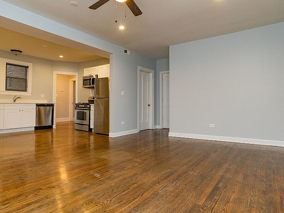 Beautiful rehabbed three bedroom/one bathroom apartment available in Portage Park! Features an eat-in modern kitchen with stainless steel appliances, microwave and dishwasher. Hardwood floors throughout the unit. The living room is large with many windows for natural light. The bedrooms easily fits a queen-sized bed. There is ample closet space. The modern bathroom features updated fixtures and subway tiling. Central heat, paid laundry in the building. Small dog (with some breed and weight restrictions) or cat allowed for an additional fee. What a great location- just south of the Six Corners of Portage Park! Near shops, restaurants, and nightlife (Bryn Mawr Breakfast Club, Alexandra's Pierogis, Retro Cafe, Live Wire Lounge, and more); Kilbourn Park Fieldhouse and Gardens are just 2 blocks away. Groceries and necessities like Tony's Finer Foods, Cermak Produce, and Walgreens are only a couple of blocks away. The building is also within walking distance to the Greyland Metra, Cicero and Belmont Ave. busses. Give us a call now to schedule a showing!
