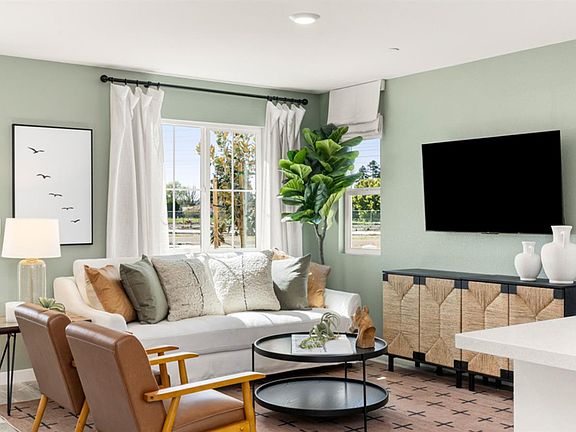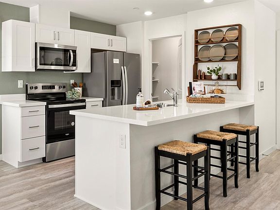 Gated community. Brand new solar farm home offering a two-story alley floor plan with 3 bedrooms, 2 bathrooms, and a 2-car garage. Features include a spacious open-concept great room, plank flooring all downstairs, carpet upstairs, quartz counter tops and shaker-style cabinets. Home features a Connected® Smart Home System which includes a programmable thermostat, door locks, smart light switch and touchscreen Smart Home control device when the system is connected to the internet. Please note interior photography is from the model complex.