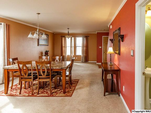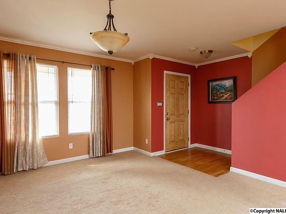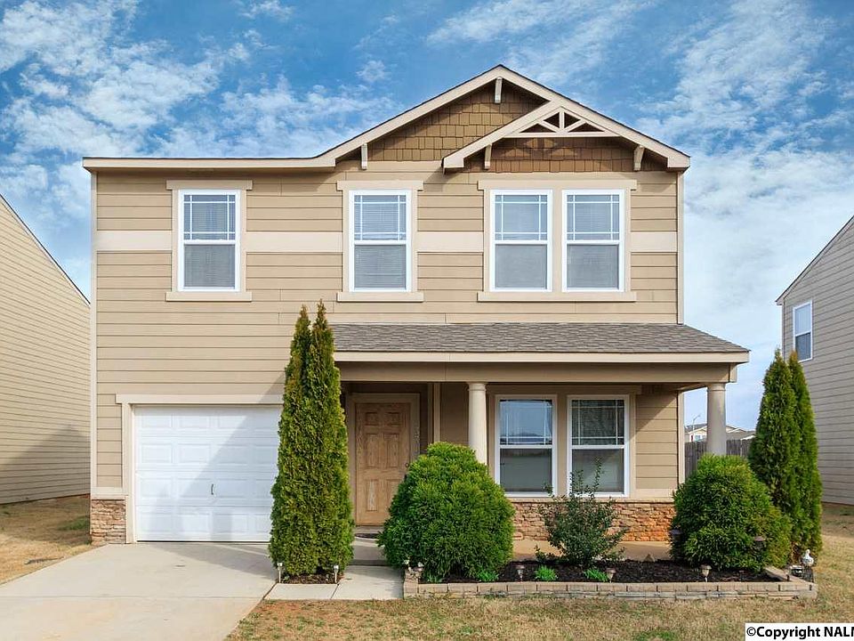This affordable and well maintained home has 3 bedrooms 2.5 bathrooms. It features an open floor plan which will make entertaining guests a breeze with the spacious deck outside and the privacy fence allows for play with your kids/pets. Numerous amenities including track lighting, spacious walk in closets, and carpet in all the bedrooms. It has a storm shelter that fits 3-4 people in the garage. 1 year old roof. 100% financing available and less than $55 per square foot. Move-in ready and easy access to I-565; convenient to Polaris Plant and Huntsville International Airport. Minutes away from Redstone Arsenal, Wheeler Wildlife Refuge, Decatur and Bridgestreet.