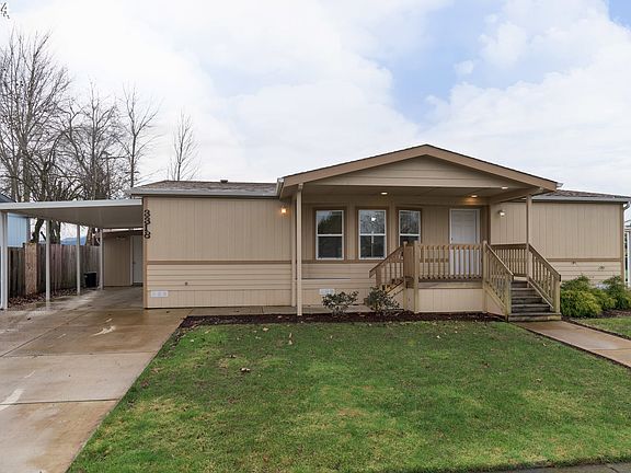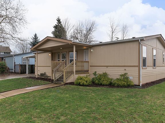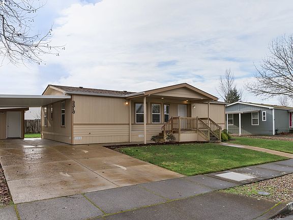 Super cute and updated manufactured home that looks and feels brand new! You'll love the feel inside with updates including newer paint, carpet, laminate flooring and hickory wood cabinets. Heat pump was installed in 2020 as well as the addition of a 324 sq ft carport. Spacious yard has underground sprinklers and a nice storage shed. Sale is for the manufactured home only, space rent is $795/month. Turn key home at a very affordable price!