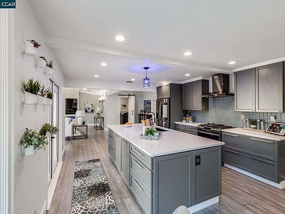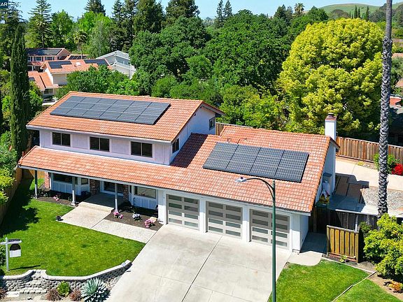 A magnificent 3,043 S.F. Carriage Hills of Northgate home. Premium ¼ acre lot that backs to the trail! This contemporary 4BD-3BA home enjoys modern features & fabulous backyard. Completely remodeled kitchen w/Quartz counters & custom tile backsplash, SS appliances, gas cooktop, oversized island & breakfast nook. The adjacent family room has cathedral ceilings, custom wall fireplace & 2 French doors that open to the backyard. A spacious living room & formal dining room create fantastic areas to entertain & enjoy. The downstairs also includes a bedroom, updated full bathroom & laundry room. Upstairs is the primary bedroom w/peak ceilings, an office/sitting room, 3 closets, & a updated full bathroom. There are 2 additional bedrooms & a renovated bathroom. Excellent green features include owned electric solar w/2 Tesla power wall batteries, under the Pre 2023 Tru-Up credit system, tankless water heater, Anderson dual pane windows, LED lighting, upgraded insulation & newer 2 zone HVAC! Amazing backyard featuring a recently resurfaced swimming pool & spa, sport court, patio & gazebo. Excellent location near top schools, trails, shopping & parks. More "do not miss" features - bamboo floors, custom tile floors, 3 car garage w/custom doors & upgraded electrical.