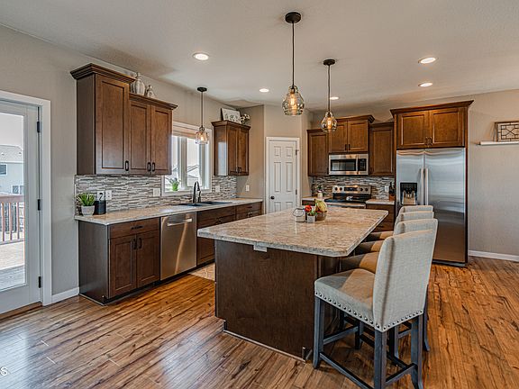 No Specials Balance! This STUNNING one-of-a-kind, split-entry style home has everything you need and more! The entrance foyer with access to the garage is spacious with half bath, coat closet and storage bench. Whether you are hosting family dinners or entertaining friends, the open concept kitchen, dining and living room will be perfect to meet your needs! The kitchen features three pantries (one for appliances, food, and supplies), coffee bar, large island/breakfast bar and access to the deck and backyard. Main floor has full bathroom and 3 bedrooms including primary bedroom suite with walk-in closet and ¾ bathroom with dual vanities. All bathrooms (except half bath) have linen closets. Lower-level features 2nd living room, wet bar with refrigerator; bonus room currently used as a kids play area (would make the perfect office or craft area too!); laundry with storage, clothes drying/hanging area, floor drain and sink; 2 additional bedrooms with walk-in closets; ¾ bathroom; storage room with built-in shelving; large under stair storage area; and utility room. The oversized triple garage (one bay is extra wide) is heated with storage area, built in cabinet storage, floor drain, and hot/cold water. Adjacent to the garage is a large concrete parking pad. Fenced backyard features fire pit, deck, patio, small shed, and 4 maple trees. Underground automatic sprinkler system. Custom built home with lots of extras: dual zone furnace thermostat, hot water recirculating pump, room darkening shades in bedrooms, surround sound in lower-level living room (behind TV/TV stand) and primary bedroom bathroom (top of linen closet), and recessed lighting with dimmers. Located close to Burleigh Ave and S Washington St. Property has video/audio surveillance.