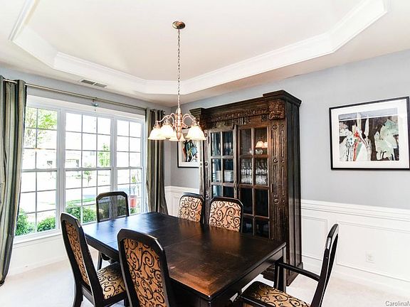The Talbot plan is a desired plan in BelAir at Carolina Lakes. There are only a few in the neighborhood! Come see this one today. Crown molding in dining room, gourmet kitchen, TWO pantries in kitchen, custom backsplash, corian countertops, kitchen opens to great room, two story foyer, master bedroom with trey ceiling, large storage closet on main. Custom patio in backyard and wooded yard. Trash pickup is included in HOA dues.