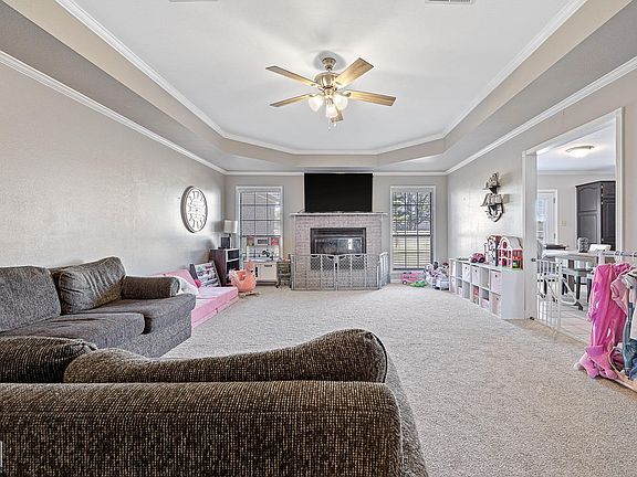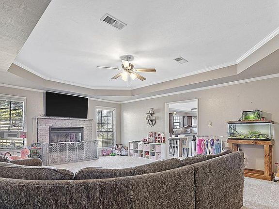 This house is a solid choice for anyone looking for plenty of room both inside and out. It's a 3 bedroom, 2 bathroom place stretching almost 2,000 square feet, making sure you won't feel cramped. The location it's in is pretty special, too - a massive corner lot over 1.5 acres, giving you the best of both worlds: it's peaceful, like you're out in the country, but you're still close enough to enjoy city amenities. To maximize the privacy and peace of mind while playing outside, the sellers have installed a HUGE new wood privacy fence in the back yard. Walking inside, you'll find a big living room that has a cozy fireplace, high ceilings, and some great trim work. The kitchen is a highlight, open with plenty of space for cooking and storage, plus multiple dining places like the large kitchen island or the dining space. The primary bedroom is very large, and features a bathroom with a double vanity, two separate closets, and an additional vanity. The home does not just boast it's size, but also the care that has been put into the home. You will not have to worry about the weather because the air conditioner was replace last summer. Plus, floors and paint are new throughout the home, so the only thing needed for you to do to this home is to move in. If you're looking for a place with lots of space, inside and out, and in an area that's quiet without sacrificing convenience, this could be the one for you.