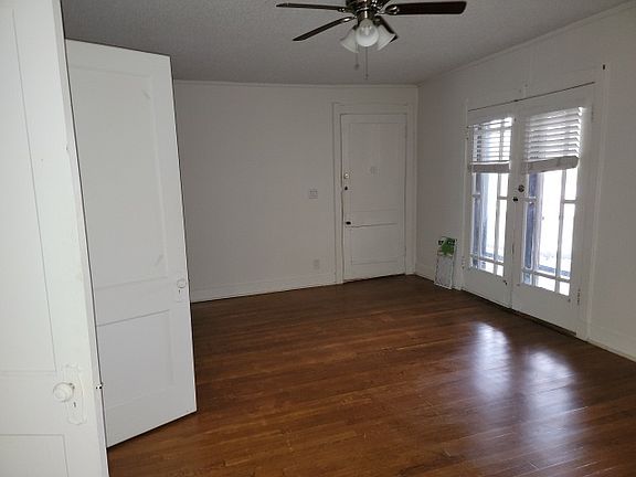2nd floor apartment with a nice front porch with ceiling fan, and back porch access