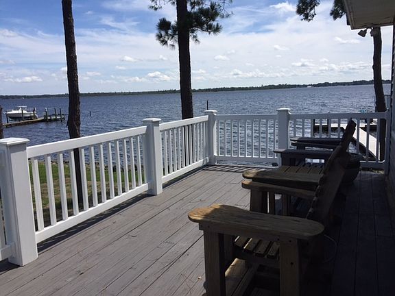 Water Front Paradise at it's best! fish,hunt,swim,ski,waterboard, crab, and play right out your door. pier, boat house, and 2 jet ski lifts .New metal roof, new refrigerator, new Heat pump, fenced in yard surrounds the home for your 4 legged family member. 3 lots go with the home tax value on the three extra lots are almost what we are asking for the home and lot it sits on. Oh and I forgot to mention it comes furnished! Yep that's right just bring your clothes and fishing rods.. What a deal on this home. Has been well maintained and a water view that's nothing short of Amazing!!Can't spend the time here we wanted to so let our misfortune be your gain.