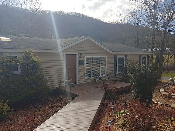 Address is 3319 Middle Wallens Creek Rd with U gravel drive. Large sunny home with large wood stove. Property set up for homestead with chicken/rabbit pens .Outdoor shed for storage/10x12 greenhouse/18x20 carport with concrete pad/fenced area for garden. Peaceful creek for fishing and swimming and listening to the water on 10x30 covered back deck overlooking the mountain views. Plenty of storage with pantry that holds deep freezer and shelves for food/canning. Large rooms with master with full bath and large 5x7 walk in closet . Smaller room used as office with built in desk has half bath attached. Off of living area with woodstove is an additional office space with built in desk and cabinets. Woodstove heats entire home electric furnace also for secondary heating. Spring water is very good and comes down from cave in mountain and water rights go with home. High speed fiber optic internet if you work from home/tv streaming ect. Established planting and landscaping. Area on right from front of home could be used for more livestock or enjoying the shade in the summer. Maples on property were tapped this winter for maple syrup making! Town of Duffield is close less than 10miles and new DG store is 5 miles away. Plenty of wildlife. All Thermal insulated windows and doors. All the work has been done ready to move in and enjoy the country life. Property line looking at front of house is creek is boudary on left and wooded tree line behind carport and shed is back property line and follows around to right side yard to rd.