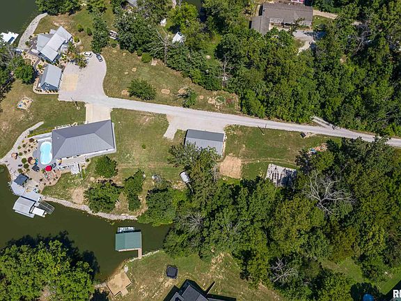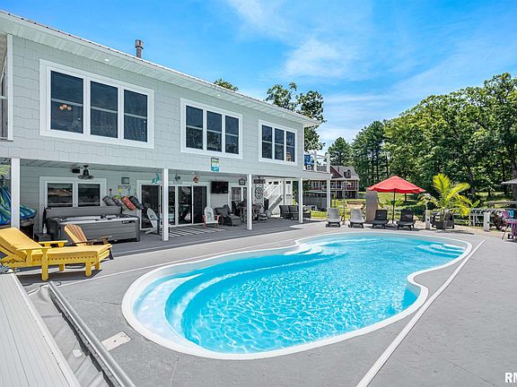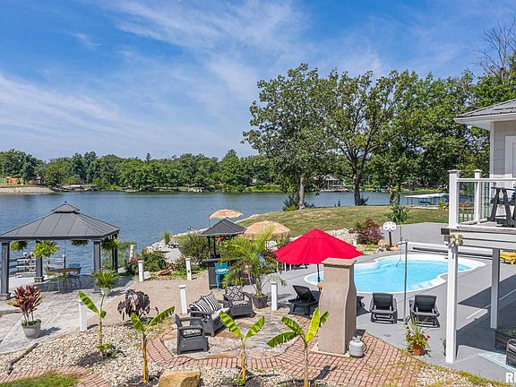 Paradise found - a little coastal flavor in Southern Illinois. This home is absolute perfection, from the four seasons porch to the canning kitchen, the 30 x 50 barn, the extravagant decking and patios, boat lifts, dock, swimming area, outdoor fireplace, in ground pool, etc. The 4 seasons porch invites you to overlook the lake while enjoying your morning coffee, your afternoon nap, or catching the sunset. Cool gray and blue hues throughout this home make every space welcoming. Custom cabinetry in both kitchens, built-in bookshelves, ceramic tile, warm wood flooring, geo thermal heat and air, sewing room, office or nursery off the large master bedroom, roomy laundry room and pantry, full size refrigerators and freezers in both main floor and basement kitchens are just a few of the remarkable amenities. This is a must see for anyone looking for a getaway. Smart board siding, metal roofing, and maintenance free decking leave the owners with time to enjoy the outdoors.