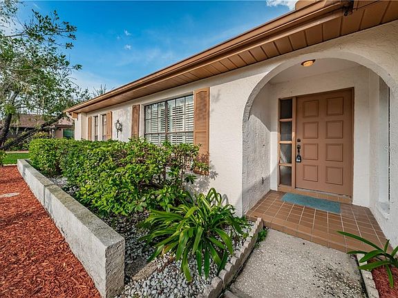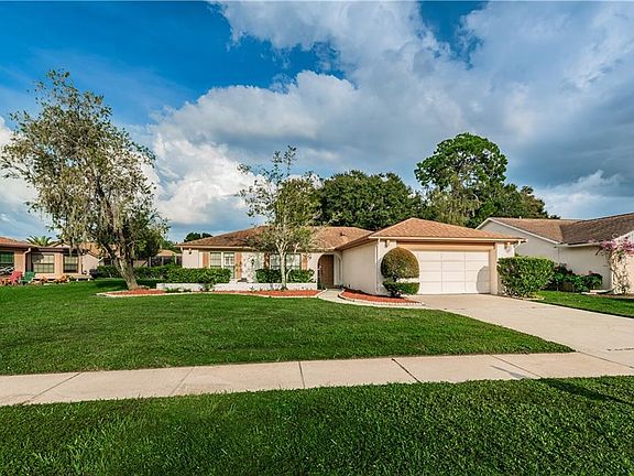 Great location is desirable Fairway Springs. This open 2 Bedroom plus den, or 3 bedroom with 2 car garage, split floor plan with Cathedral ceilings has a Living Room with Wood Burning Fireplace & recessed lighting, along with formal Dining Room with sliders leading to huge Screened Lanai overlooking beautiful landscaping and trees with room for a garden or hot tub. There is also a Breakfast Room off the Kitchen with windows surrounding the room and French doors leading to the Lanai. This would also make a great Office. The spacious Master Bedroom has sliders leading to Lanai and Master Bath with dual sinks, Walk-in Shower, along with Walk-in closet. Inside laundry with storage. Roof replaced Dec. 2013, Transferable Terminix contract, and A/C recently serviced with new capacitor. Excellent schools including desirable Michel High School. Close to Starkey Park, shopping, restaurants, hospital, 20 minutes to gulf beaches, 30 minutes to airport. PRESENT ALL OFFERS!