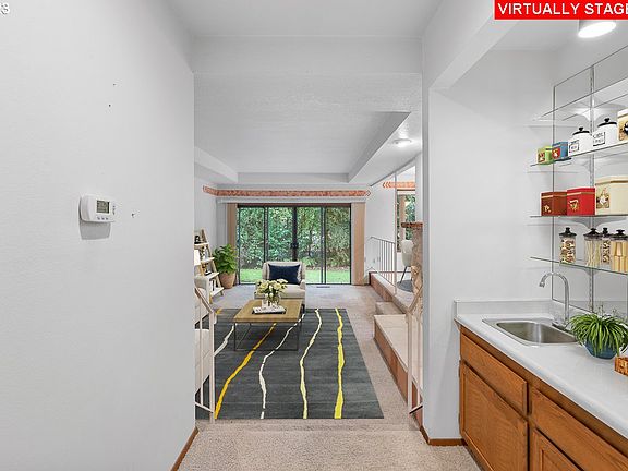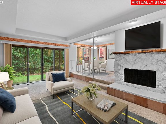 Discover your dream home in this spacious 2 bedroom, 2 bathroom condo set back from the hustle and bustle. You will fall in love with this serene community featuring a gorgeously landscaped, wooded, 6 acre park-like setting with a pool, tennis/basketball courts, tranquil duck pond, and private walking trails. This oasis retreat does not live like your typical apartment-style condo featuring easy ground level accessibility, ample storage, laundry room with in-unit washer and dryer, as well as an oversized two car garage. The front entry has a fenced patio adding extra security and privacy. Enjoy cozy nights by the fireplace in the sunken living room. Relax on one of your two covered patios while sipping your favorite beverage and enjoying nature. The wet bar and the spacious dining room are perfect for gatherings and you even have a bonus office/flex space to tailor to your needs. The primary suite features a walk-in closet, en-suite bathroom with bathtub, and a private covered patio. The second bathroom features a step in shower for easy access. This hidden gem is minutes away from Powell Butte, hiking and bike trails, nearby public transport, and shopping. New roof in 2018, New exterior paint 2019. HOA includes water, sewer, trash, recycling, exterior maintenance, commons, and annual inspection of fireplace/chimney. This is not your average condo!
