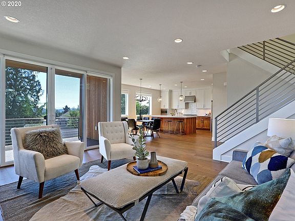 2018 build by one of Portland's most distinguished builder's - Renaissance Homes. Contemporary & entertainer's oasis: kitchen/eating/living great room, island/eat bar & large sliding door access to the covered deck w/gorgeous views of Mt Hood. 2,407 sqft floor plan:3 en-suite beds(1 en-suite bed on the 1st level), 3.5 baths & laundry on upper level. 4 blocks from OHSU, 6 blocks from the Marquam trailhead, .6 miles from the Aerial Tram that drops off at the South Waterfront and min to downtown. [Home Energy Score = 5. HES Report at https://rpt.greenbuildingregistry.com/hes/OR10177664]