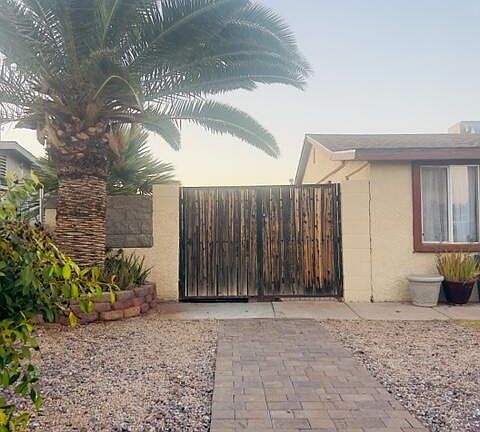 The owner takes care of his house with 3 bedrooms. Master bedroom has a separate exit. 2 beautiful bathrooms. Spacious living room, comfortable kitchen. New roof. Huge backyard with alie, and plus covered area for cars or toys. Has an extra kitchen in the covered patio where the laundry is. Close to I-10 & I-17. Do not miss it!