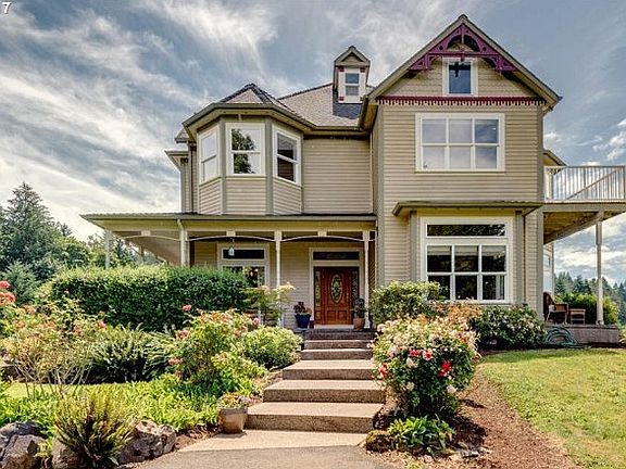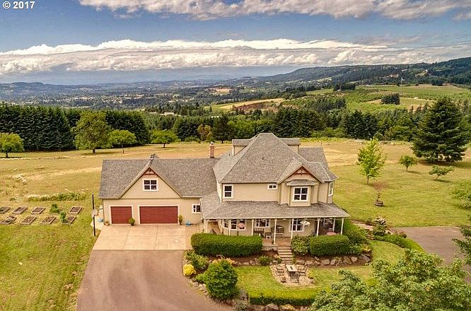 Set in the heart of picturesque Wine Country, this Victorian replica on 20+ acres on desirable Parrett Mountain boasts views that will take your breath away! Formal living/dining + fam rm. Kitchen w/island, range, blt-in oven. Vaulted master w/private balcony to take in the view; bath w/soak tub, walk-in shower, dual sinks. Large 29x24 bonus room upstairs. 2 heat pumps. Beautiful grounds w/gardens, patio, huge 30x60 detached shop & more