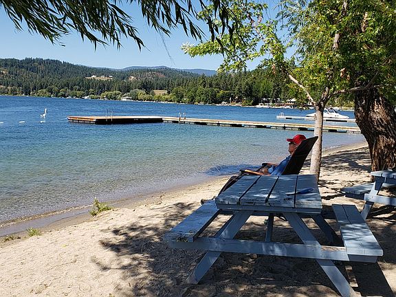 Well Maintained solid frame built 2 bedroom, 1 bath cabin with private gated community beach rights and boat slip. Waits lake offers year round fishing and is well known as a Blue Ribbon Fishery. Metal roofing and cedar siding. Treed lot yet still offers a peekaboo view of the lake. Security system, woodstove ( cord of firewood included) all kitchen appliances included as well as 2 hide abed couches in living room. BEST OF ALL OWNER CONTRACT TERMS WITH 25% DOWN. 6% INT, term negotiable. Kitchen appliances and window air conditioner stay. New hot water tank. Security System.