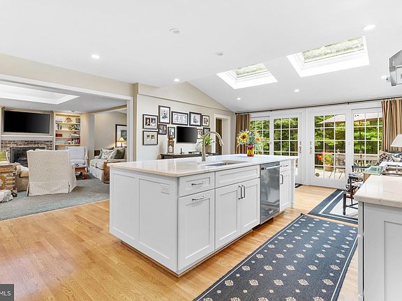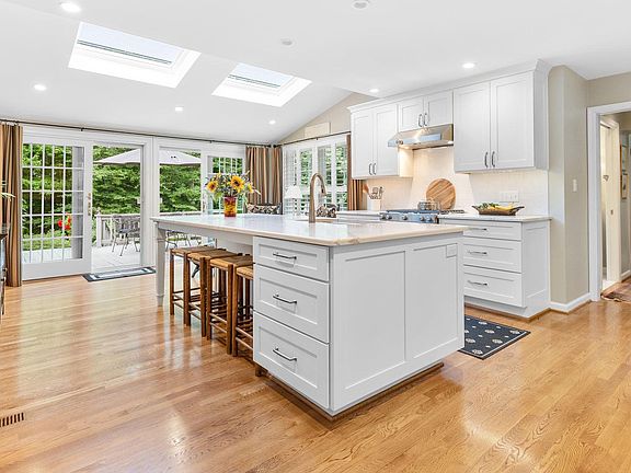 Classic colonial that has been exquisitely updated and improved over the years. A large rear addition increased the size of the kitchen and family room affording additional living space in the areas where you spent the most of your time. Renovated kitchen features quartz counters, island seating for 6, 42" white cabinetry, and stainless appliances including a 5 burner gas range. Sitting area with skylights and sliders to expansive deck overlooking rear yard. Large family room is highlighted by gas fireplace flanked by built-ins. First floor is also host to dining room with fireplace, office, laundry and full bath. Upstairs you will find primary bedroom suite with private full bath, three generous sized bedrooms, and full bath in hall with separate sink and shower areas. Finished lower level offers additional entertaining space. Roof was replaced in 2019. HVAC system has been updated. Exceptional curb appeal with an interior that is sure to impress!