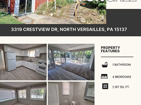 Owner will finance the purchase of your home. With our easy to qualify program and available short term leasing options, it's never been easier to buy and move into your new home. Beautifully remodeled 2-story home 4 bedrooms, 1 bathroom 1,167 sq. ft. of living space Spacious yard with room to enjoy Bright and airy sunroom Versatile hobby room with excellent lighting Fresh interior & exterior paint Updated kitchen with appliances included Modernized bathroom New flooring throughout Located on a quiet, no-outlet street Peaceful residential pocket in North Versailles with easy access to schools, shops & major roadways Within the East Allegheny School District (K 12) Close to parks, trails & recreational areas Convenient to shopping, dining & local amenities Exceptional value a hidden gem you don't want to miss Move-in ready! TO QUALIFY: 1) A reasonable down payment from you 2) Steady income that can be verified 3) Ability to make consistent monthly payments With the friendly terms we offer, you will not want to miss out on this home. Call, text or email to schedule an immediate showing. We encourage you to act quickly as our homes sell VERY FAST due to our special financing programs. CALL US AND ASK ABOUT OUR PROGRAM TODAY!!