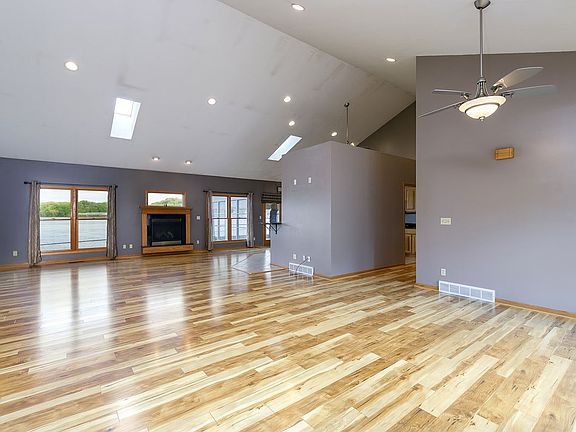 Have you ever seen such a beautiful home? This house sits just off of the Mississippi River and has such a serene view of nature. Natural light floods every inch of the open concept feel and vaulted ceilings. New granite countertops shimmer in the light and make your kitchen a great spot to entertain both day and night. The gas fireplace warms the living space and provides comfort. There are 2 bedrooms with a shared hallway bathroom on one side of the home and the Master suite is located on the other side for privacy. Your large master suite has a gas wall fireplace, a very large walk in closet, and an on suite with whirlpool tub and stand alone shower. Wake up each more to a fantastic view of the Mississippi River flowing right behind your backyard space! 3 seasons porch has a gas hook up for another fireplace. Deck off of the back is another great entertaining and relaxing place. Main level laundry and a huge garage are also added bonuses! Call today for your showing! Why wait?