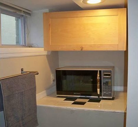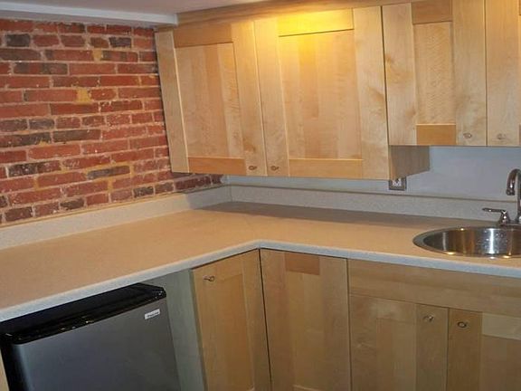 This rear entrance studio apartment was recently renovated. The freshly painted, pointed, exposed brick and recessed lighting create a cozy atmosphere. The beautiful new light colored kitchen cabinets, stainless steel sink, small refrigerator/freezer and convection microwave provide an attractive and functional dining area. The tiled shower and full stacked laundry convenient. The apartment is wired for Comcast TV and internet at discount prices. The back yard has a freshly sodded lawn and a new patio great for grilling. 1 year lease with month to month at the end