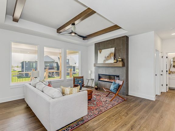 Socora's sought-after Westin plan is sure to captivate you, carrying you through today's contemporary designs in this outstanding plan. The primary main floor is spacious and functional with beamed ceiling, electric fireplace with a floor to ceiling tiled wall, and an office with french doors. The kitchen showcases quartz countertops, gas cooktop, counter seating, and a walk-in pantry. Beyond the space of the dining room is a generous 16x13 covered deck, perfect for entertaining. The owners suite is tucked away for privacy offering a tiled shower, built-in shelves, double sinks and a large walk-in closet. The fully finished basement features a family room, game area, two bedrooms and a full bath. Fontana offers a zero-entry pool with splash pad, playground, walking paths and lakes. It's also minutes away from New Market Square for all your shopping and dining needs. A $175 mailbox key fee is collected at closing. LOWER SPECIALS, LOWER TAXES AND MAIZE SCHOOLS. All information deemed reliable and not guaranteed. Open daily from 1-5.