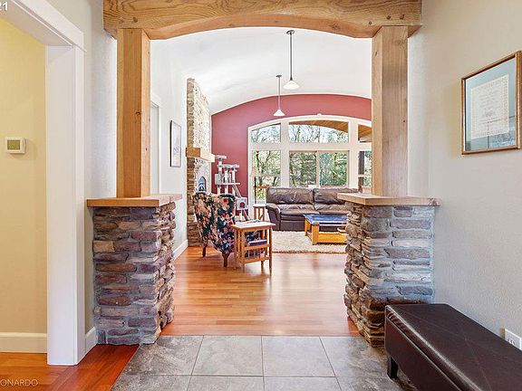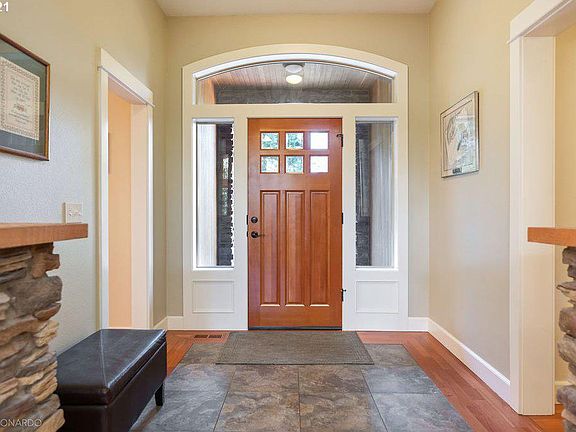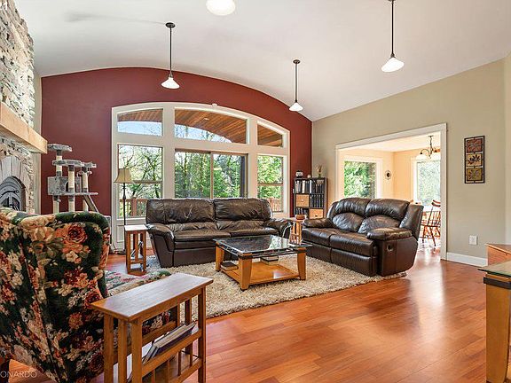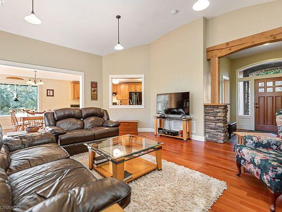 Custom-built ranch entry has vertical cedar, stone, and wood beams. This 3000 sqft home provides main floor living and space for entertaining friends & family with complementary downstairs media room and bedroom. Space for large gatherings, large stone fireplace for intimate gatherings, and 1.39 mostly flat acres space for entertaining & playing. The T&G ceiling-covered deck overlooks a private treed yard. Enjoy fruit trees & a separate 465 sqft Office/ADU. Workshop, RV parking, and storage.