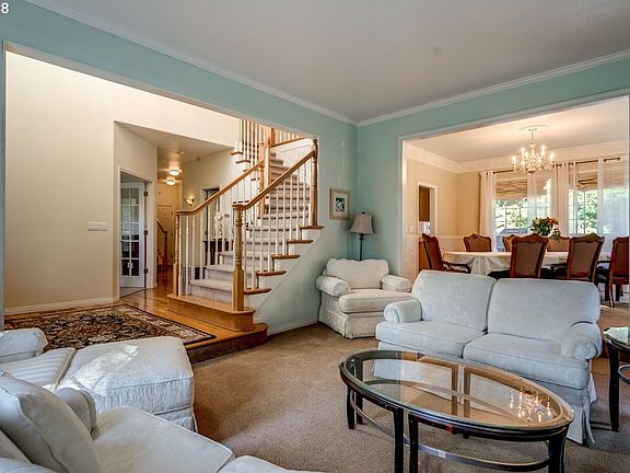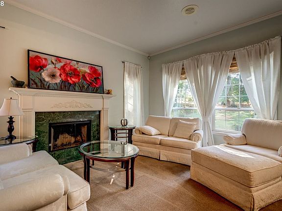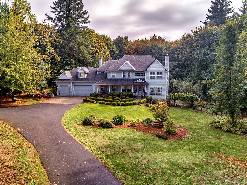 Traditional Tranquility in updated 4 Bdrm, Bonus & Den on 5 quiet gated acres. Hdwd flrs, tall ceilings & crown mldg. Grt Rm w/ wood stv opens to island Kitchen w/ Bosch cooktop, stainless appl. Formal Dining, sunken Living Rm w/ firepl. Master balcony, quartz, jetted tub. New cedar & iron decks by orchards, yard & forest. Sunroom or Art Studio/Yoga Rm. Savor time by Packard Creek. Patio plumbed for kitchen/dog bath. See 3D Floor Plan.