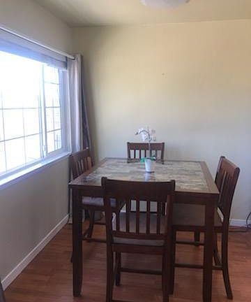 link for video at bottom of this description. Freshly painted and recently updated fully furnished 3 bdrm 2 full bath 2nd floor unit in a duplex. Great natural lighting. Quiet neighborhood. Laminate floors throughout. Kitchen has granite counter tops and newer cabinets. Newer glass top electric stove, dishwasher and refrigerator with ice maker. laundry room on first floor with washer and dryer. shared yard space. Local eateries; Miliki Nigerian Restaurant , Sequoia Diner, Peters Kettle Corn, Everett & Jones BBQ, and many others are nearby to try in Laurel District include Farmer Joes produce and meat, Food Mill natural foods and vitamins, . Mills college is about 30 minutes walk. Safeway grocery store on Redwood Rd or Fruitvale. Great community businesses in Laurel district. Owner pays electricity, garbage and water utilities. Tenant pays internet/wifi. There is 1 car space available in a two car garage with some storage. Rent is $3000 with deposit of $3000 due upon signing of 1 year lease. Please provide proof of income. No smoking, sorry no pets. This apartment is fully furnished. that is negotiable. There is a $20 application/credit check fee for each applicant.