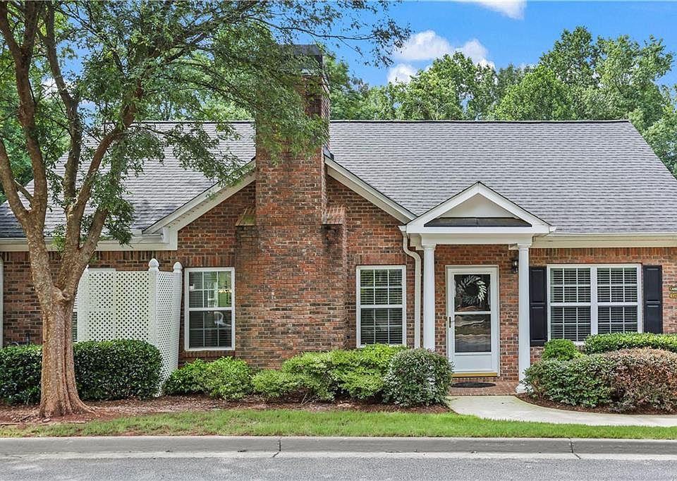 Charming Magnolia Lane Community features low maintenance all-brick condos. This lovely, stepless, 2 BR/2 BA has a fabulous open concept living/dining floor plan with tons of natural light and a large 2 car garage with auto door opener. Features include entry foyer, vaulted ceiling, ceiling fans, spacious great room with fireplace, gas logs, large eat-in kitchen with bay window and glass door leading to a lovely side patio, great for your morning coffee. The kitchen boasts a breakfast bar, lots of cabinet & counter space, refrigerator, gas stove, large pantry & hardwood floor. There is a nice sized laundry room with cabinets, tile floor plus washer & dryer. Oversized master suite, gorgeous palladium window, a walk-in-closet plus another good- sized closet. The bathroom has a tile floor, double vanity & shower. There is an Inviting guest bedroom and 2nd bath with tile floor & tub/shower combo. Amenities include a clubhouse and community swimming pool. HOA covers outside dwelling maintenance, lawn and grounds maintenance, pest and termite control, insurance, trash and water. This tree lined neighborhood is conveniently located close to the East-West Connector, Wellstar Cobb Hospital and lots of shopping and restaurants.