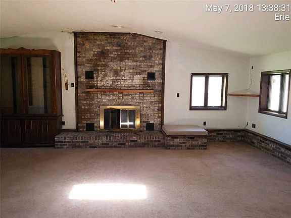 Large ranch with a wood burning fireplace. Fenced in yard, an attached garage with a detached 2 car garage in the rear of the house. Needing some roof work. Being sold "AS IS"