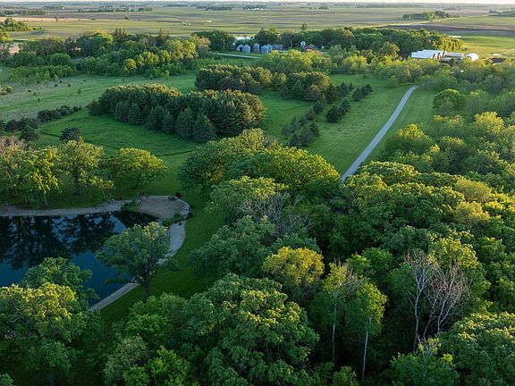 Immerse yourself in this custom-built 2017 home on 60+ spectacular acres, minutes from Austin, Owatonna, Albert Lea, and Dodge Center. A 1500’+ private asphalt driveway leads to this serene oasis with a 20’+ deep spring-fed pond featuring a sand beach, outdoor shower, pier, swim platform, and concrete patio. Wildlife abounds year-round, and the property includes 17 expired CRP acres, towering oak trees, and an extensive trail system for nature walks, horseback riding, cross-country skiing, and ATV adventures.