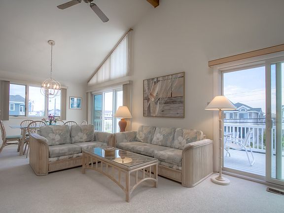 Invest in Leisure! Without all of the work of a single family house, but with all of the comforts, this affordable Townhouse is the ideal "beach house". Featuring upside/down styling, the spacious living room and dining room open onto a large deck with southern exposure and views from beach to bay. Retractable awning extends outdoor use while wood burning fireplace extends the cozy feeling year round. With four bedrooms and 2 baths there is room for your family to enjoy lots of leisure time and memories to last a lifetime in Stone Harbor.