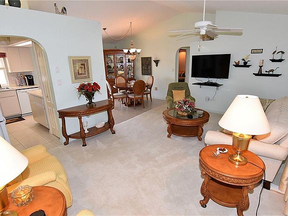 Click the Tour 1 icon above for the 3-D INTERACTIVE VIDEO VIRTUAL TOUR! Starting out, the really nice curb appeal is extended by planting beds around all the other 3 sides of the house. The tiled entry is screened which allows for extra cross-ventilation & energy savings. It opens into a tiled foyer (nice for protecting the carpet). Once inside you can see that this property has been cared for by a very particular owner. You have heard of 'move-in-ready,' well come to this gem to see one for yourself. The tile & carpet floors are immaculate & show hardly any wear at all - no need to replace any for years. The kitchen's vaulted ceiling adds spaciousness to a working area that looks like it is never used. Almost all master bedrooms have walk-in closets these days & showers, but this one has a true walk-in/out shower - no glass doors to clean constantly. Bedroom #3 has a Murphy bed, so this room is convertible to a variety of uses. Because the sliding glass door to the lanai pockets, it really helps bring the outdoors inside the dining & kitchen areas. That oversized lanai opens to a spacious deck that contains a heated spa. So, no worries & cost of maintaining a full-sized pool but have the enjoyment of sitting in a jetted, heated spa that will relax you & loosen those tired muscles. This lanai-spa-screened deck area is a fantastic set-up for parties & entertaining, especially with those pocketing sliding doors. This property comes with a ONE YEAR HOME WARRANTY. Much more info attached - ask your agent.