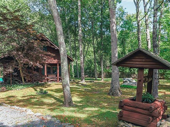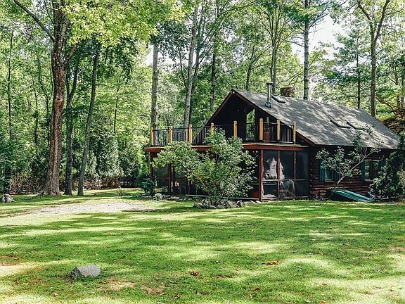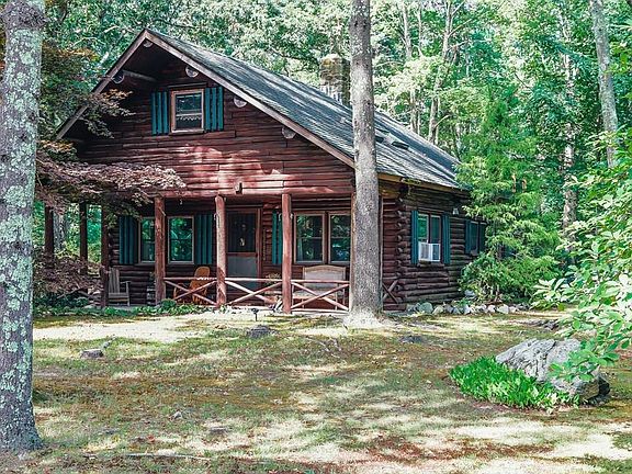 Welcome to this lovely two bedroom log cabin home, located in beautiful Rehoboth. This rustic home features a main level offering kitchen, dining/living area, with wide pine floors throughout and a large stone working fireplace with Vermont Casting wood stove inlay. The master lofted bedroom includes door to roof top balcony, as well as, catwalk to potential home office area. Rocking chair ready front porch along with a screened in back porch that overlooks the large private backyard. Home includes custom made shed, with fenced in dog pen and large custom made dog house. Brand new windows throughout and recently updated roof equipped with 50 year shingles.