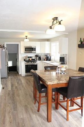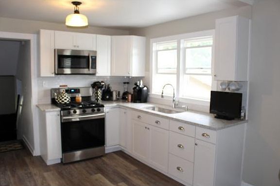 Beautifully updated home. 1st floor bedroom and 2 bedrooms upstairs. Gorgeous NEW kitchen w/stainless appliances and large eat-in area. NEW living room w/ gas stove. NEW bathroom, NEW windows. 1 car garage and large fenced yard! This is a true beauty and will not last.