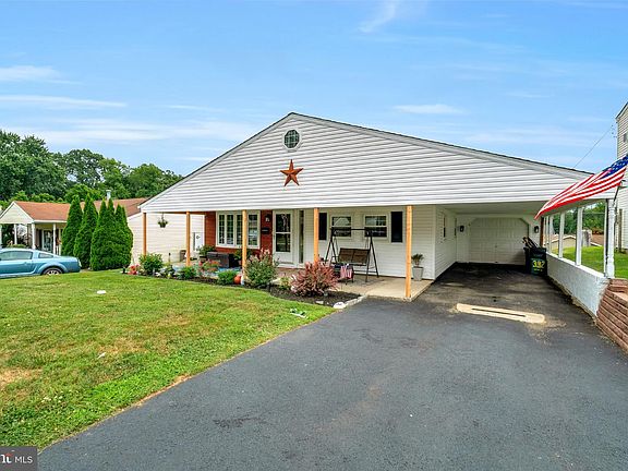 Expanded and updated Fairless Hills ranch style home. Great curb appeal with huge front A-roof patio combine with a cover carport with a one car garage. This lovely home offers three spacious bedrooms. Kitchen with 42~ oak cabinets, gas cooking, dishwasher and built in microwave. Large laundry closet with washer, dryer and storage. 11~ x 20~ Family room addition with decorative brick wall. Amazing backyard, great for entertaining. There is a rear patio & deck with above ground pool, new privacy fencing, a garden, and doorway to the one car garage. Remolded hall bath. Home sq. ft. apox. 1200. Home has replaced windows, newer roof, newer sewer line, freshly painted. Central air and gas heat. Ready for a quick settlement.