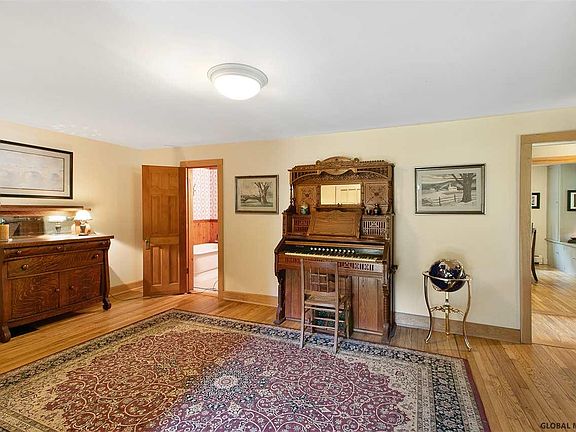 Here's a sophisticated country gem within Saratoga School District and just minutes to downtown Saratoga. Set on 6 acres, this historic home has been thoughtfully transformed into an 5-bedroom/2.5 bath oasis with special rooms and features for everyone, from the hardwood floors, natural wood molding and woodstove. Eat-in kitchen, formal dining room, sun room, greenhouse, rear deck, hot tub and above-ground pool. You will never want to leave, and you won't have to. First-floor also has home office, second-floor laundry. This is some of the most gorgeous land in Saratoga Co./ADK foothills, but convenient to Glens Falls and Saratoga. Privacy seekers who understand a special, high-quality home, you must come see. Grass lawn, landscaped garden, 2-car garage. Heaven -- at an incredible price.