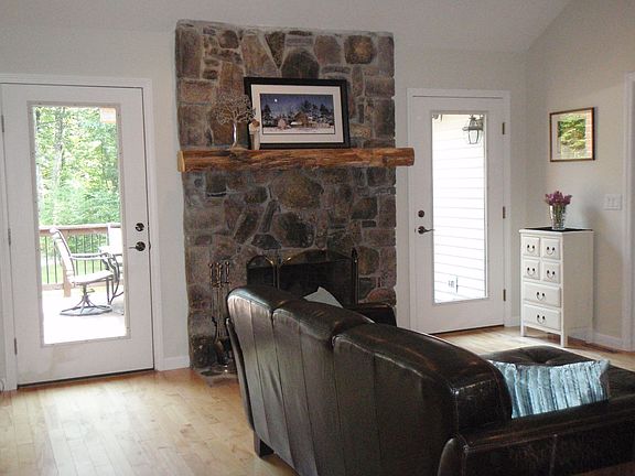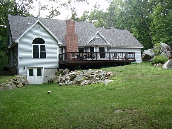 Newer, bright, airy open floor plan contemporary cape with loft rooms and walkout basement. Gorgeous hardwood, vaulted ceilings in great room and bedrooms, natural fieldstone fireplace, master walk-in closet, 27'x40' detached garage. Simple, modern yet warm. Must see in person to appreciate. Details: - 4 Bedroom, 3 Bath (1 bath in basement) - 2 car attached garage (insulated) with hot & cold water spigot - 27â?? x 40â?? detached garage (10â??x 10â?? doors), fits 6 cars, 14â??x40â?? room above - Home security system - Central air conditioning - Propane heat, hot water, oven and dryer - 1000 gallon in-ground propane tank (owned) - Forced hot air furnace w/ electronic air cleaner and humidifier - Central vacuum throughout including basement & attached garage - 75 gallon hot water tank - 200 Amp main panel and underground service - 100 Amp sub-panel in detached garage - Open floor plan - Walkout basement - Hardwood floor living area (Red Oak & Canadian maple) - Tile kitchen & bath floors - Cathedral ceilings (great room and 2 bedrooms) - Field stone fireplace in great room, cellar flue for wood stove - Large back deck - 3 bedrooms & 2 baths on 1st floor - Master bedroom w/ walk-in closet - Master bath w/ bubble tub & walk-in shower with massage jets - Laundry room in basement with shoot from master walk-in closet - Large bedroom on 2nd floor - 2 lofts & wet bar on 2nd floor - Full basement (insulated) w/ lots of heavy duty shelves for storage Neighborhood Description Quiet, friendly, private, scenic & surrounded by nature.