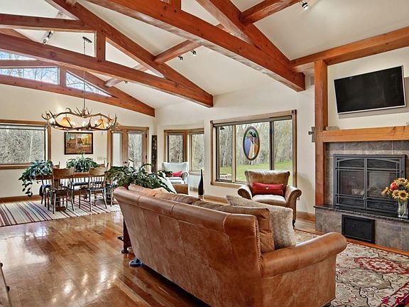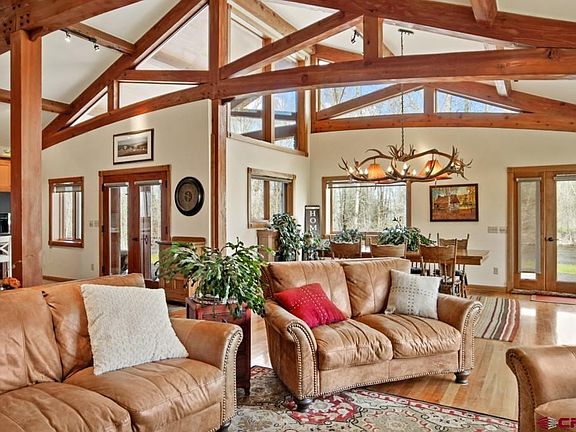 Square footage includes the one bedroom apartment behind the detached garage. Square footage of main home is 3424 per Gunnison County records. The bedroom count is the main home plus apartment. The bathroom count includes the home and apartment plus the 1/2 bath in the shop building. This is a very comfortable and unique home with outbuildings and a river front setting. Home, guest home, two detached garages, a large detached shop building, on the banks of the Gunnison River AND the 2.786 acres includes a separate riverfront lot and well permit allowing for another home, your own putting green or sale and recapture of some of your investment. The shop building is currently rented. The home was remodeled by a highly regarded cabinetmaker. The cabinets and custom doors throughout the home are exquisite. Both the kitchen and dining room, accented by arched trusses, have access to the large patio (partially covered) to enjoy the views and the calm of the river. The rest of the ground floor includes a large master suite complete with steam shower, a second bedroom/bath, laundry and half bath. Upstairs is a large bonus room complete with pool table, office space and TV area along with a neutral bath and another large bedroom with dedicated vanity. Broker has a list of improvements that the current owner has completed, including new heating systems, exterior paint and much more.