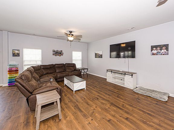 Wonderful Home in Beautiful Moss Grove! This 4 bedroom home has the perfect floor plan and is ready for new owners. Open concept, spacious living, kitchen and dining area with laminate floors. Lots of cabinet space in the kitchen with classic subway tile back splash. Bar stool seating and dining area seating, perfect for entertaining or family meals. Don't let the .11 acre lot size deter you, this home is set closer to the front of the lot, giving you the maximum amount of space for your backyard recreation and enjoyment. Upstairs there's a loft , laundry room and four spacious bedrooms. The master suite is large and has a deluxe master bath with garden tub and separate shower.Moss Grove has so many wonderful amenities, including a pool, clubhouse, playground, walking trails and a large lake to fish and canoe in.