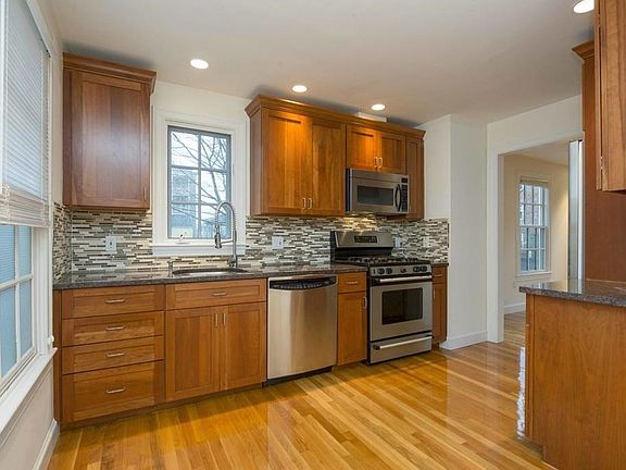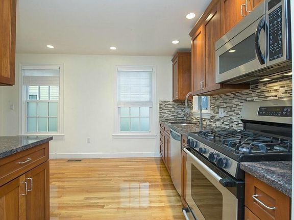 Exceptional living in a fabulous location.This end-unit Townhouse at the Broadway Village association has direct access garage parking and is set far back off the street in a beautifully landscaped setting. The open living area has a gas fireplace, custom window treatments, and is flooded with sunlight.The living room opens to a custom designed kitchen with cherry cabinetry, stone countertops, glass tile backsplash,and stainless appliances.The second floor contains two generous sized bedrooms with ample closet space, brilliant sunlight, and guest bathroom with laundry area.The master bedroom suite is complete with a large walk in closet,and sliding glass doors to a private balcony. The marble en suite bath is flooded with natural light and has double sinks, separate glass enclosed shower, and deep soaking tub. Additional amenities include:central air, and a 10x10 private storage room.