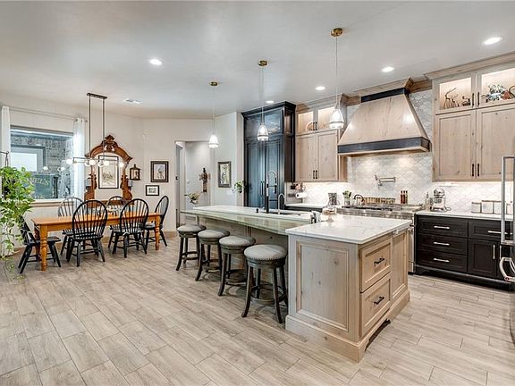 Timeless style & smart design, this home has it all! The spacious, open floor plan & attention to detail really set this home apart. Walk into this open floor plan & inviting modern home to fall in love! The living room has a wet bar & built-in storage. The heart of the home is the kitchen w/ SS appliances, 6 burner, gas range, pantry, beautiful, hand stained cabinets, & an island with combo quartz/butcher block counters. Home office or formal dining off entry. The owner's retreat features a walk-in shower, two vanities, wonderful closet, & access to patio. 3 spacious secondary beds w/ one downstairs. The backyard, dipping pool, hot tub, FP & patio would be great for entertaining. Oversized, bonus rm is downstairs & used as an art rm. Extras: room for 4 cars in garage, stairs up to the attic, instant hot water, water softener/reverse osmosis, wired for generator, outlet for RV, & LED lights. 2.42 acres w/ stocked fishing pond(well filled). This stylish & stunning home is move in ready!