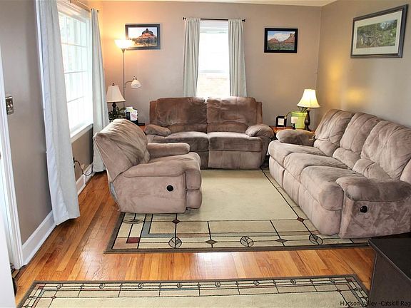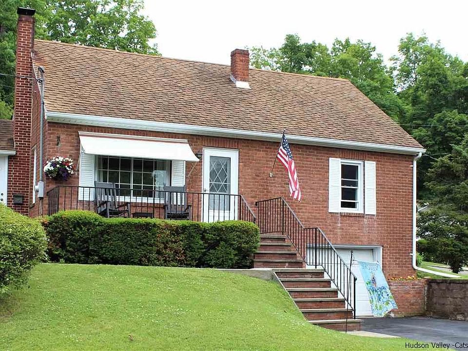 This lovingly maintained brick cape has everything you have been looking for! The first floor features an updated kitchen with wood cabinets, tile floor and French doors leading to the deck. A mudroom is conveniently located off the kitchen with its own separate entrance. Wood floors flow from the bright, cozy living room into the formal dining room. A sweet bedroom and full bath complete the first floor. The upstairs floor plan includes a master bedroom with dual closets, a full bathroom, a third bedroom, and lots of extra storage space. A partially finished basement adds 233 sq feet with a family room heated by a pellet stove. Additionally, a utility room includes a washer and dryer, extra refrigerator, and laundry sink. Situated on a corner lot with a fenced-in backyard and above-ground pool, hot tub, and large deck turn this property into an oasis. A one-car garage and two-car driveway allows for plenty of parking. You don't want to miss this charming home!