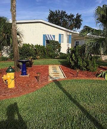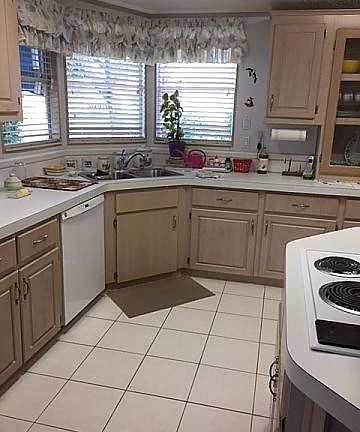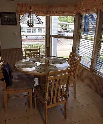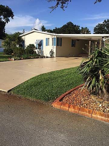 Talk about curb appeal! Double driveway and carport with golf cart garage and the golf cart stays. Home is being sold furnished and has wood/laminate flooring throughout the open living area. Patio off Florida room overlooks the lake. This home has it all!