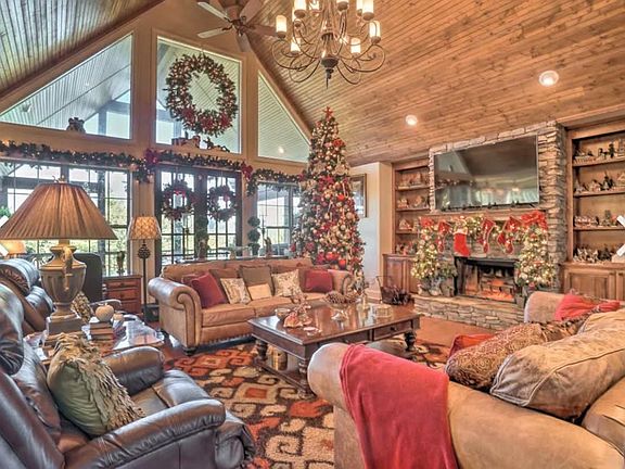 Gorgeous well-maintained Mountain Home in Exclusive Gated Community. A Must See Must Have Custom Home Spacious Open Floor Plan Spectacular 360' Long Range Mountain Views. Lush Landscaping and , Concrete Driveway and Winding Sidewalk. Low Maintenance Vinyl Shaker Siding, Permanent Color Trim Eves, Facia and Under Hang Vinyl Coverings. Inside 9' Ceilings and Vaulted Ceilings Throughout, Solid Wood Floors both Levels, Custom Cabinets, Granite Countertops, Marble Showers, Walk In Closets, 7'6" Custom Wood Doors, High End Trim, Tongue and Groove Cathedral Ceiling, Stone Wood Burning Fireplace, Over 80 Windows for Panoramic Views and Natural Light, Open Floor Plan and Excellent Traffic Flow. Massive Chandeliers, Ceiling Fans and Tiffany Lighting, Property Recently Painted and Shows Beautifully. Propane Tank is owned. Frontier Internet Provides Excellent Internet Service, Spacious Two Car Garage with High Ceiling and Good Storage The Christmas Decorations have been removed but are stored on the property and Garage
