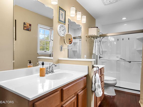 Remarkable Village Green 4BR, 3.5Ba home with 2 woodburning stove/ fireplaces boasting several new renovations and upgrades including: Kitchen floors, appliances, refinished solid wood kitchen cabinetry, refinished living room floors, primary shower enhanced with a Bluetooth fan for custom lights & sound, tankless water heater servicing the entire house, garage door openers with battery backup, additional electrical panel in garage to power a workshop/tools, 6'' gutters with Leaf Guard, and a back yard fence. This gorgeous, quiet & comfy home sits on nearly an acre lot with established landscaping complimented with blackberries and apple, pecan, & peach trees. An irrigation system fed from Turkey Creek is in place. This property is such a spacious Farragut treat located minutes away from all of the dining, shopping, cultural/educational opportunities & entertainment one desires. 2 swimming pools, swim team, tennis & pickleball courts, a playground, side walks, & too many social clubs to count!