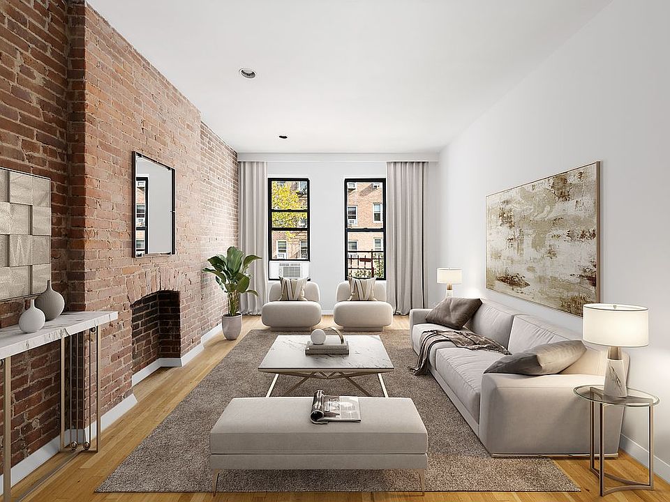 Charming decorative fireplaceElegant exposed brickSerene and cozy bedroomStainless-steel fixturesGenerous closetSolid oak wood floorsWindowed bathroom