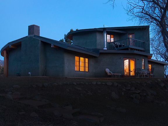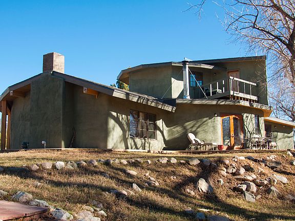 OWNER FINANCING!!!! 50% DOWN 4 YEAR BALLOON. BROKERS PROTECTED at 2.5% We built this home when our children were young. It is truly a family home. Completely custom in every way. Amazingly insulated with straw bale infill this post and beam designed house exudes warmth and European influences. The kitchen is huge and can hold and feed many. The land is incredibly beautiful and is why we originally purchased it. We loved that our children could be outside barefoot as there are no cactus! Not an easy "feat" in this area. The house is down to earth yet sophisticated. The views are incredible and the back yard populated by many mature Cottonwood trees that meander the creek bed. Year round live water, an artisan well that has never dried up in the 100 year history of documentation. Garden potential abounds with a massive straw bale walls that surround the front yard, creating micro climates to insulate plants. The land is on both sides of the creek and one side has a yurt platform ready to host one. The property has a six year history as a VRBO with many return guests and a fantastic income track record. ($20,000 to $30,000 a year rental income) The 1,200 sq.ft barn that can be easily made into an enclosed usable space such as a yoga studio or an additional living space. Water and power can easily be hooked up to it. It is nearly impossible to find land in town like this. Building a custom house like this is also impossible for our sq, footage price. Do take a look at the VRBO link provided for more photos. Call to schedule a showing.
