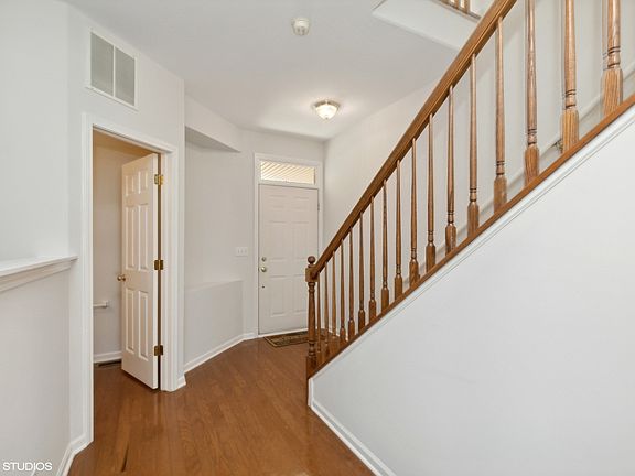 One of the largest townhomes in Algonquin Lakes, this stunning space has 9 ft ceilings and fresh paint throughout! Walk in and be greeted by hardwood floors and an abundance of natural light. The open living room/dining room combo flow seamlessly to the kitchen, which is highlighted by new custom backsplash, new oven/range, newer dishwasher, and plenty of space for a table with chairs for eat-in convenience. Continue to entertain outside, through the sliding glass door to a patio and shared grass area. Upstairs you will find 3 bedrooms and generous loft space. The primary suite does not disappoint and includes a walk-in closet and a spacious primary full bathroom. Enjoy all that this townhome and community has to offer! With walking/biking paths, 3 lakes, parks, playgrounds and within walking distance to Algonquin Lakes Elementary, this is one not to be missed!
